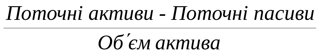 де: Х1– відношення власних оборотних активів “робочого капіталу” до суми всіх активів підприємства