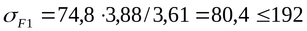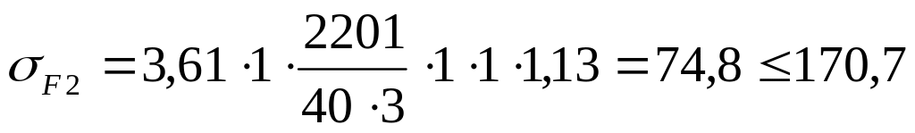 =170,7 Н/мм2 – допустимое напряжение изгиба колеса с менее прочным зубом (см. табл. 5.1);