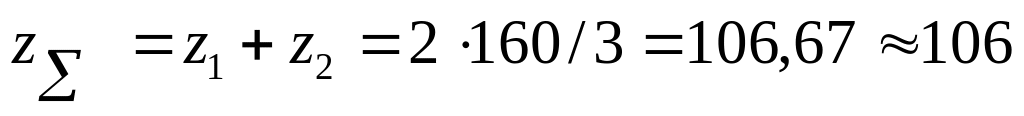 5.7 Определяем суммарное число зубьев шестерни и колеса: