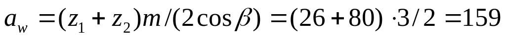 Полученное значение межосевого расстояния аw =161,6 мм, округляем до ближайшего значения из ряда нормальных линейных размеров аw = 160мм [7, табл. 13.15, стр. 326].