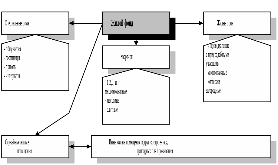 Жилой фонд – это совокупность всех жилых помещений независимо от форм собственности, пригодных для проживания (рис.1.5).