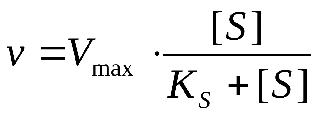 при високій концентрації субстрату та низькому значенні KS швидкість реакції є максимальною (v = ), тобто весь фермент знаходиться у вигляді фермент-субстратного комплексу;