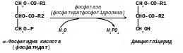 Утворений -гліцерофосфат, або гліцеринфосфорна кислота, є активною формою гліцерину і може бути використана для біосинтезу триацилгліцеридів і фосфогліцеридів. У тканинах є фермент фосфатаза, під дією якого -гліцерофосфат гідролізується з утворенням гліцерину і фосфорної кислоти. Гліцерин може також утворюватися при розщепленні жирів (триацилгліцеридів) і фосфогліцеридів завдяки дії тканинних ліполітичних ферментів.