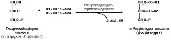 Гліцерол-3-фосфат, що утворився тим або іншим шляхом, послідовно ацилюється двома молекулами КоА-похідного жирної кислоти (тобто «активними» формами жирної кислоти – ацил-КоА). В результаті утворюється фосфатидна кислота (фосфатидат):