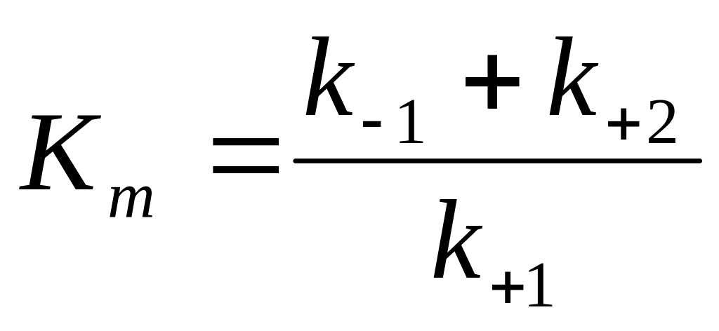 Константа Міхаеліса (Km) представляє відношення констант швидкостей всіх трьох реакцій, що здійснюються в процесі ферментативного каталізу: