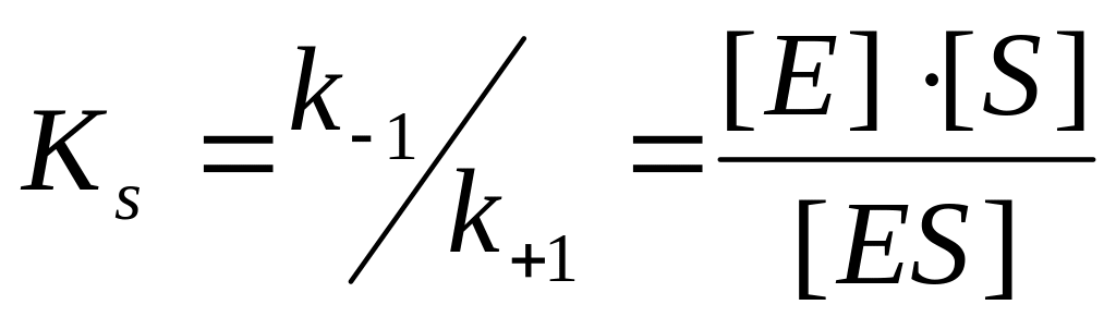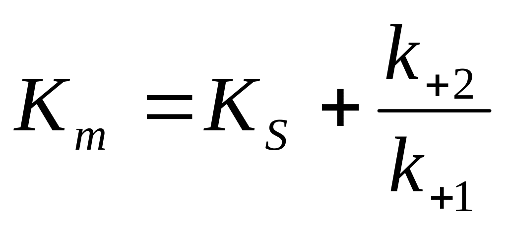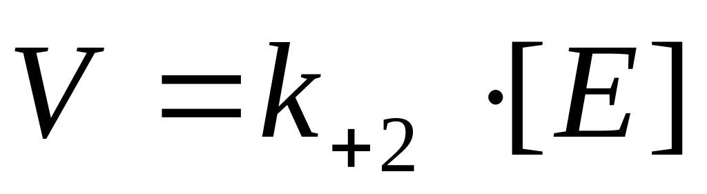 де k+1 - константа швидкості прямої реакції, k-1 - константа швидкості зворотної реакції, k+2 - константа швидкості розпаду фермент-субстратного комплексу на фермент і продукт.