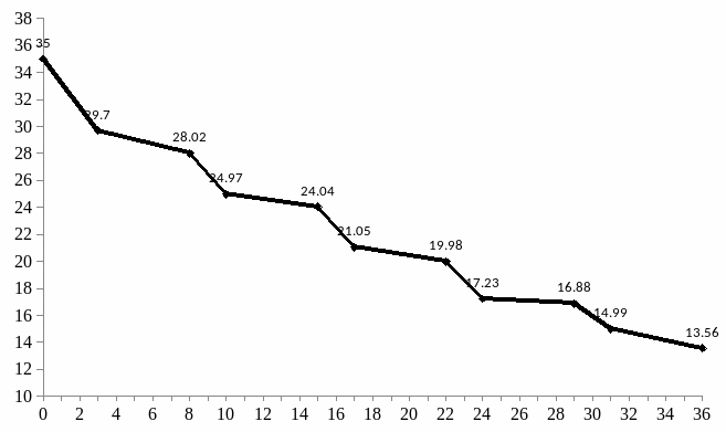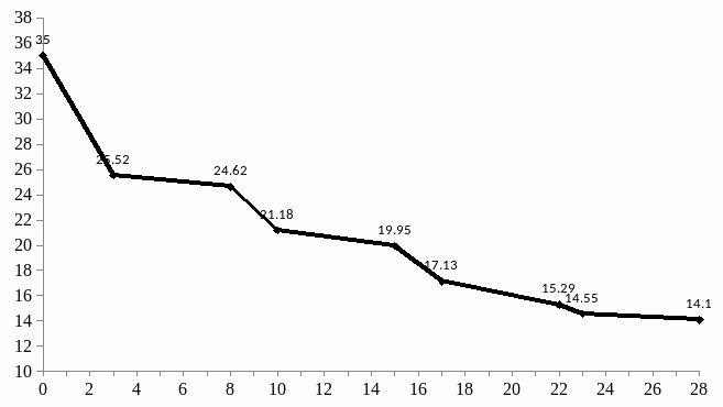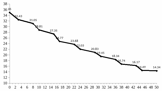 Рисунок 3.22 – Диаграмма сушки макаронных изделий из картофельного крахмала с добавлением КЭК с использованием СВЧ-нагрева удельной мощностью 3,0 Вт/г