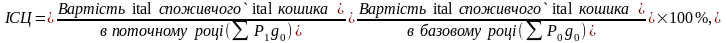 Індекс споживчих цін (ІСЦ) характеризує зміну (як правило ↑) у певному проміжку часу ( місяць, рік тощо) загального рівня цін на товари і послуги, які купує населення для споживання, та розраховується за формулою