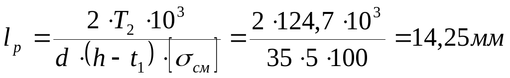 7.1.2 Минимальная рабочая длина шпонки определяется из условия прочности на смятие ее боковых граней [8]