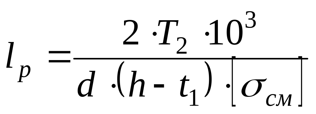 – допускаемое напряжение на смятие;