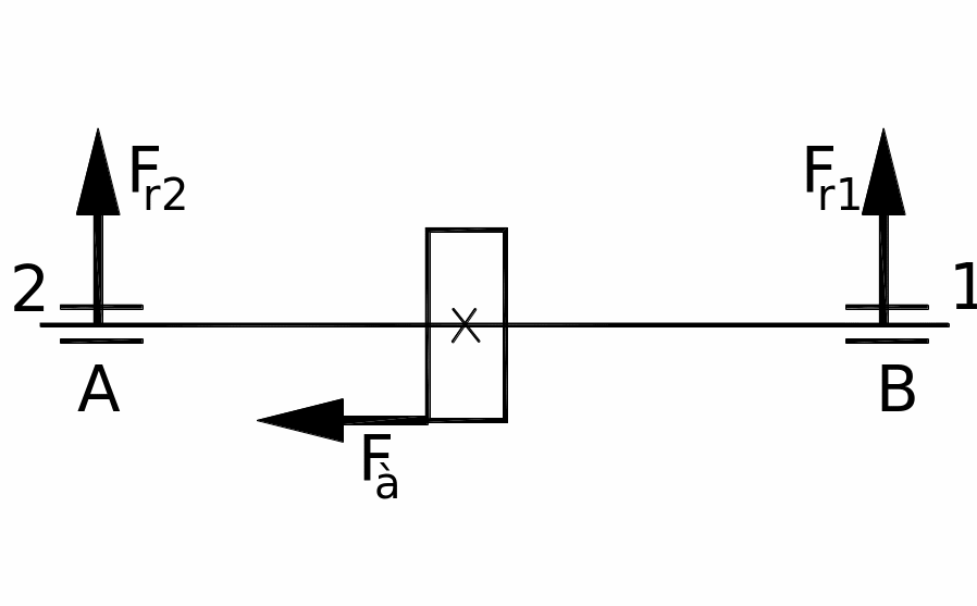 Радиальная и осевая нагрузки на подшипник определяются для наиболее нагруженной опоры. В данном случае это опора А (см. рис. 5), воспринимающая одновременно радиальную и осевую нагрузку. Обозначим ее цифрой 2 (рис.7).