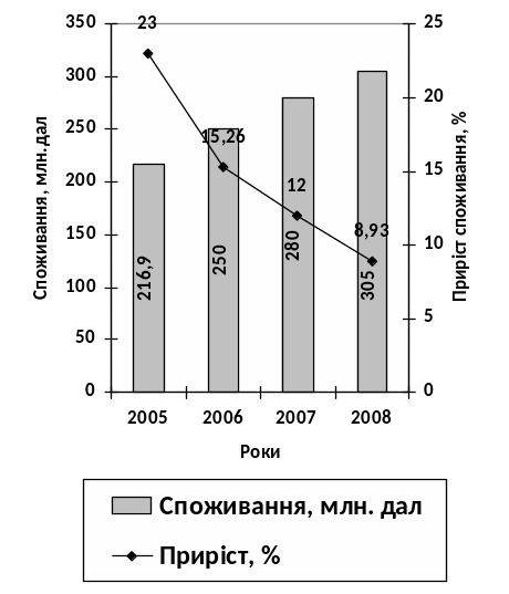 - •Темпи росту ринку, темпи росту експорту та імпорту (у % по вітношенню до попереднього року)