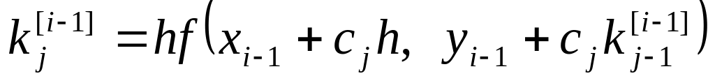 Численные методы решения задачи Коши , y(x0)=y0 на равномерной сетке {x0=a, x1, x2, …, xm=b} отрезка [a, b] с шагом являются методами Рунге-Кутта, если, начиная с данных y(x0)=y0 решение ведется по следующим рекуррентным формулам: