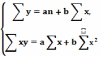 Для определения параметров уравнений прямой на основе метода наименьших квадратов, основанного на свойствах средней арифметической решается система нормальных уравнений:
