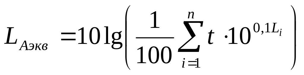 Еквівалентний рівень звуку визначаємо по формулі [ 6 ]: