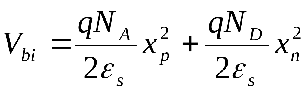 Приравнивая значения V(x) при x=0 и учитывая Vp-Vn=Vbi получим: