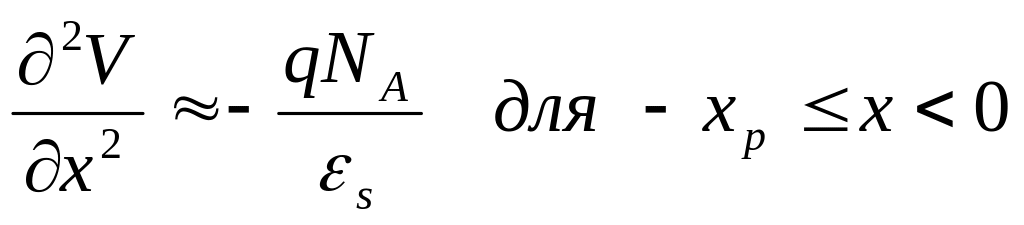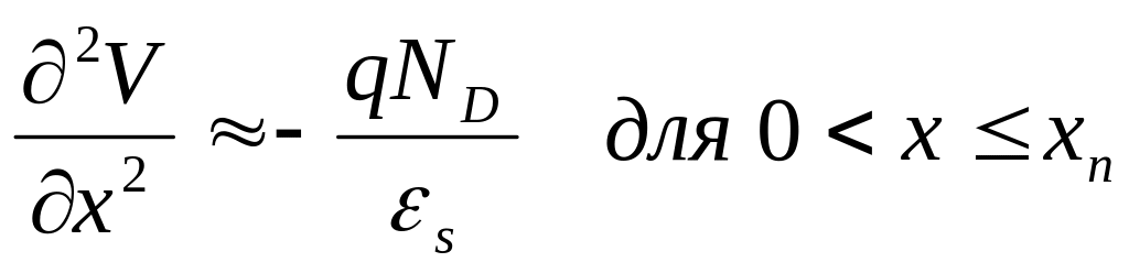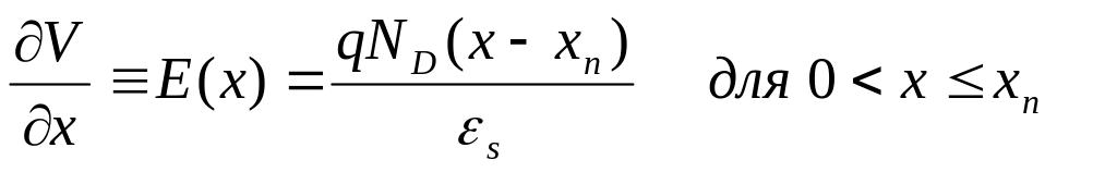 Чтобы рассчитать величину электрического поля Е(х) в обеднённой области и её протяженность xn+xp воспользуемся уравнением , связывающим распределение потенциала V с зарядом – одномерным уравнением Пуассона: