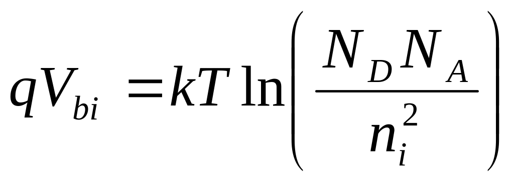 Из рисунка 3.5 следует, что Vbi представляет собой разницу между уровнями Ферми не соединённых между собой полупроводников n- типа и р- типа. Тогда с учетом выражений (2.7), получим: