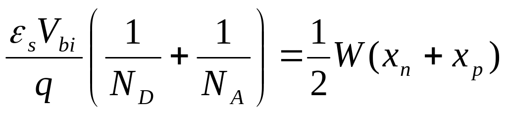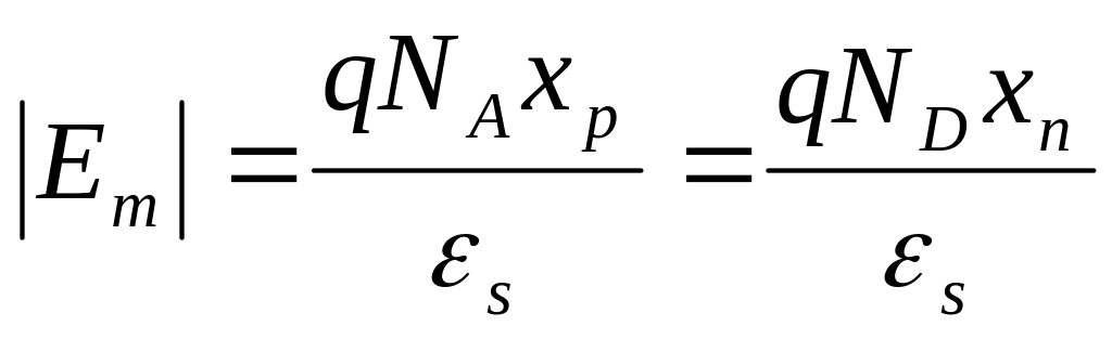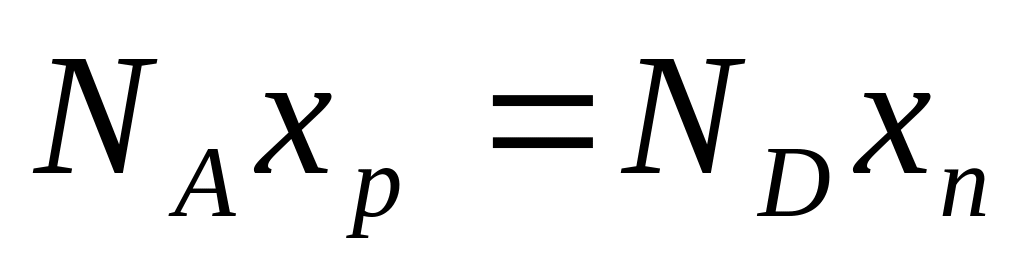 При тепловом равновесии электрическое поле в нейтральных частях полупроводника равно нулю. Поэтому общий отрицательный заряд на единицу площади в р- области равен общему положительному заряду на единицу площади в n- области: