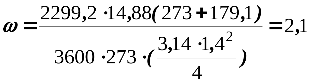 Визначення уточненої швидкості руху димових газів, м/с, за формулою (35)
