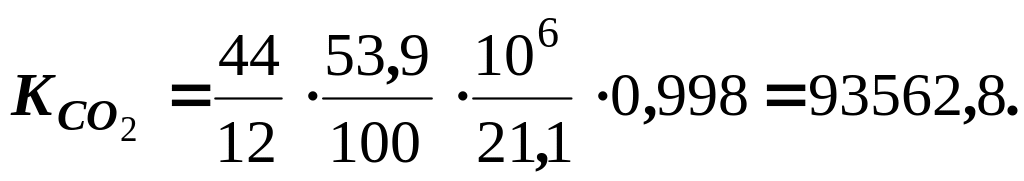 Показник емісії оксиду вуглецю під час спалювання органічного палива розраховується за формулою