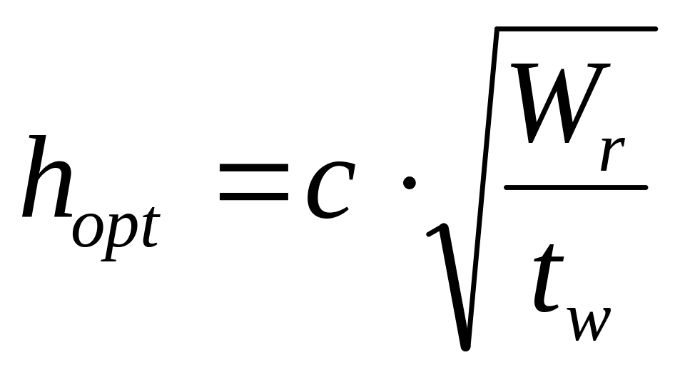 Высота балки наименьшей массы называется оптимальной высотой. Окончательную высоту принимают возможно ближе к оптимальной, но не менее минимальной.