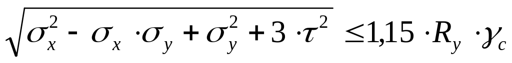 Если все три напряжения действуют одновременно, то проверка местной устойчивости осуществляется по формуле: