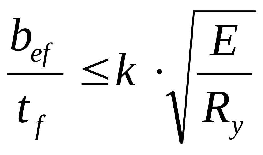 где – коэффициент, который учитывает наличие дополнительных закрепляющих факторов, например, жесткого сплошного настила, прикрепленного к поясу; рельса в подкрановых балках.
