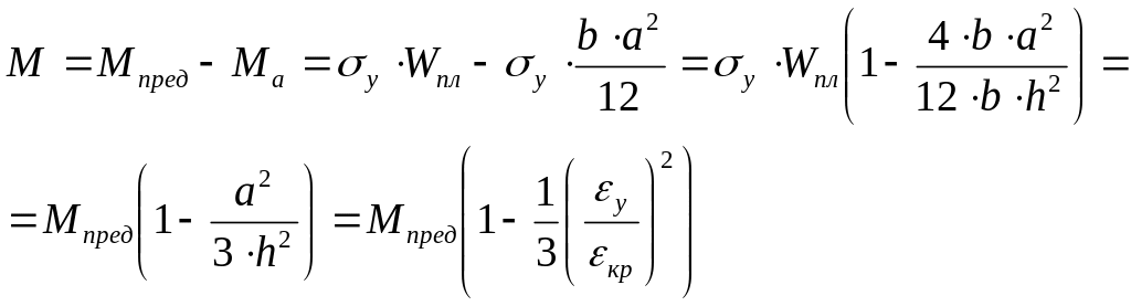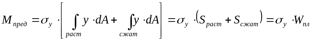 Предполагая сталь идеально упругопластическим материалом и допуская, что напряжения достигнут предела текучести, можно определить предельное значение момента шарнира пластичности. Предельный момент внутренних сил определяется из выражения: