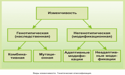 Модификационная (фенотипическая) изменчивость — изменения в организме, связанные с изменением фенотипавследствие влияния окружающей среды и носящие, в большинстве случаев, адаптивный характер. Генотип при этом не изменяется. В целом современное понятие «адаптивные модификации» соответствует понятию «определенной изменчивости», которое ввел в науку Чарльз Дарвин.