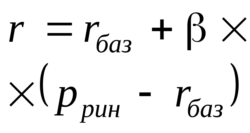 де rбаз — базова безризикова ставка дисконту; — коефіцієнт бета (коефіцієнт системного ризику); ррин — середня дохідність ринку |