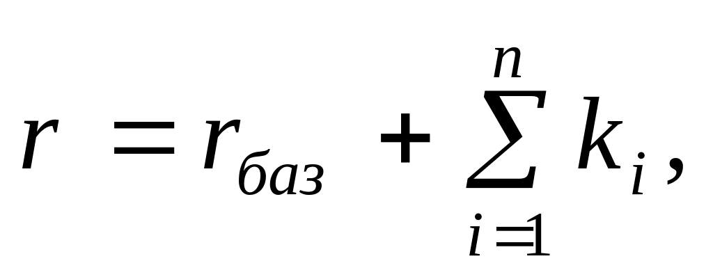 де rбаз — базова безризикова ставка дисконту; ki — компенсація за і-тий ризик; n — кількість урахованих ризиків |