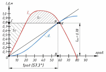 По полученному значению частоты, определяем значение амплитуды бортовой качки θm=9 град.