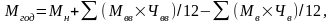 где Мн - производственная мощность на начало периода; Мвв - мощности, введенные в действие в течение года; Мв - выбывшие в течение года мощности; Чвв - число месяцев эксплуатации введенной в действие мощности; Чв - число месяцев с момента выбытия мощности до конца года.