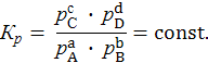 Математическое выражение для константы равновесия Кр будет являться также математическим выражением закона действующих масс: