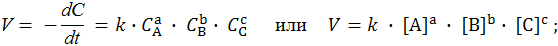 где CA, CB, CC концентрации веществ А, В, С (моль/дм3) в данный момент времени;