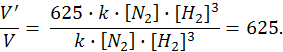 V′ = k·5[N2]·(5[Н2])3 = 625·k·[N2]·[Н2]3.