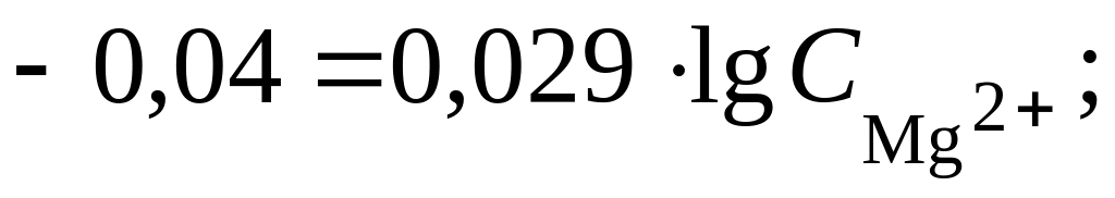 Пример 3. Магниевую пластинку опустили в раствор соли магния. При этом электродный потенциал магния оказался равен –2,41 В. Вычислите концентрацию ионов магния в моль/дм3.