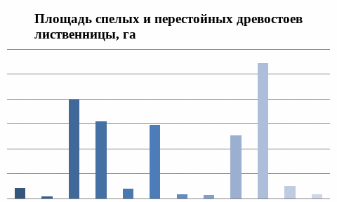 По сравнению с данными прошлого лесоустройства, в лесхозе отмечается увеличение древостоев VIII и старших классов возраста. При этом увеличение площадей старовозрастных древостоев (XII класса возраста и старше) сокращается у сосняков, лиственничников, березняков и осинников, а площадей насаждений VIII-XI классов возраста - преимущественно у березняков.