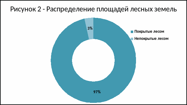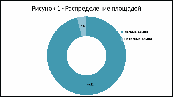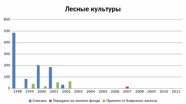 Вычисленная по материалам лесоустройства площадь лесхоза увеличилась и составляет 354933 га. За ревизионный период увеличилась площадь не покрытых лесом земель на 60,5% за счет пожаров и вырубок. Площадь лесных культур переведенных в покрытые лесом земли увеличилась в 141%, при одновременном сокращении несомкнувшихся лесных культур на 72,7%.