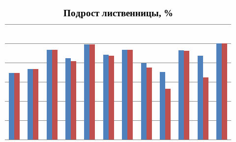 Таким образом общая сохранность подроста должна составлять соответственно 45–53 % и 36–42 % от первоначального количества.