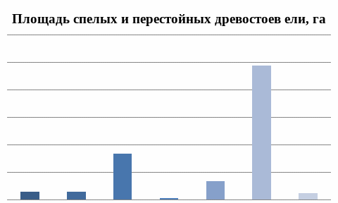 Среди древостоев хвойных пород произошло сокращение площадей и запасов средневозрастных, приспевающих и спелых древостоев. В тоже время произошло накопление перестойных хвойных древостоев и увеличение хвойных молодняков.