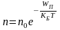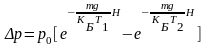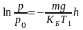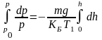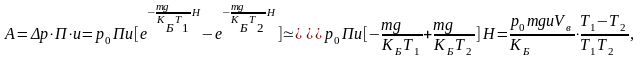 Распределение давления p1 и плотности молекул газа n1 вдоль высоты h вычисляется следующими соотношениями. Рассмотрим на высоте h объем dV=Пdh (П – площадь поперечного сечения трубки). Число молекул в нем