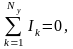 Соотношение (7.3) именуется первым законом Кирхгофа. Всего можно написать независимых (У–1) уравнений первого закона Кирхгофа (У – число узлов ветви). Например, для схемы рисунок 7.2 можно написать 4 уравнения, хотя узлов 5. Дело в том, что уравнение для узла «0» может быть получено из уравнений для узлов I, II, III, IV путем исключения токов I3 и I8 из них. А это значит, что это уравнение не является независимым.