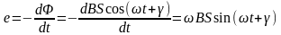 где В – индукция магнитного поля, в котором вращается контур, S=lτ (l и τ – размеры контура), ω – угловая скорость вращения, ωt – угол поворота контура относительно плоскости, перпендикулярной силовым линиям магнитного поля, γ – произвольная начальная фаза.