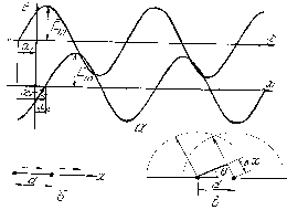 Рассмотрим сложение двух синусоидальных волн одинаковой частоты, но разных фаз, распространяющихся в одном и том же направлении – вдоль оси х (рис. 9.2, а):
