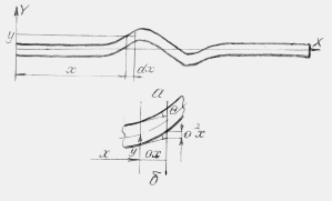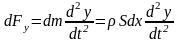 Согласно второму закону Ньютона, сила dFy вызывает ускорение элемента dx вдоль оси y: