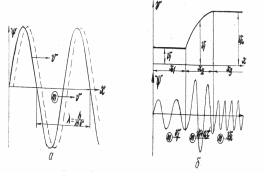 На рис. 11.2,б показан волновой пакет, соответствующий этой функции. Итак, мы видим, что применение аппарата волновой функции, определенной уравнением Шредингера, действительно аналитически позволяет установить частицу в какой – либо области пространства, если она начнет двигаться ускорено, причем это движение будет длиться столько, сколько определяется уравнением неопределенности Гейзенберга.