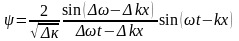 где ω и k определяются соотношениями (11.7,а), δк и групповая скорость (скорость группы волн) v2 равны: