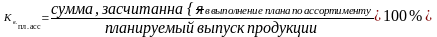 Для оценки выполнения плана по ассортименту рассчитывается коэффициент выполнения плана по ассортименту: